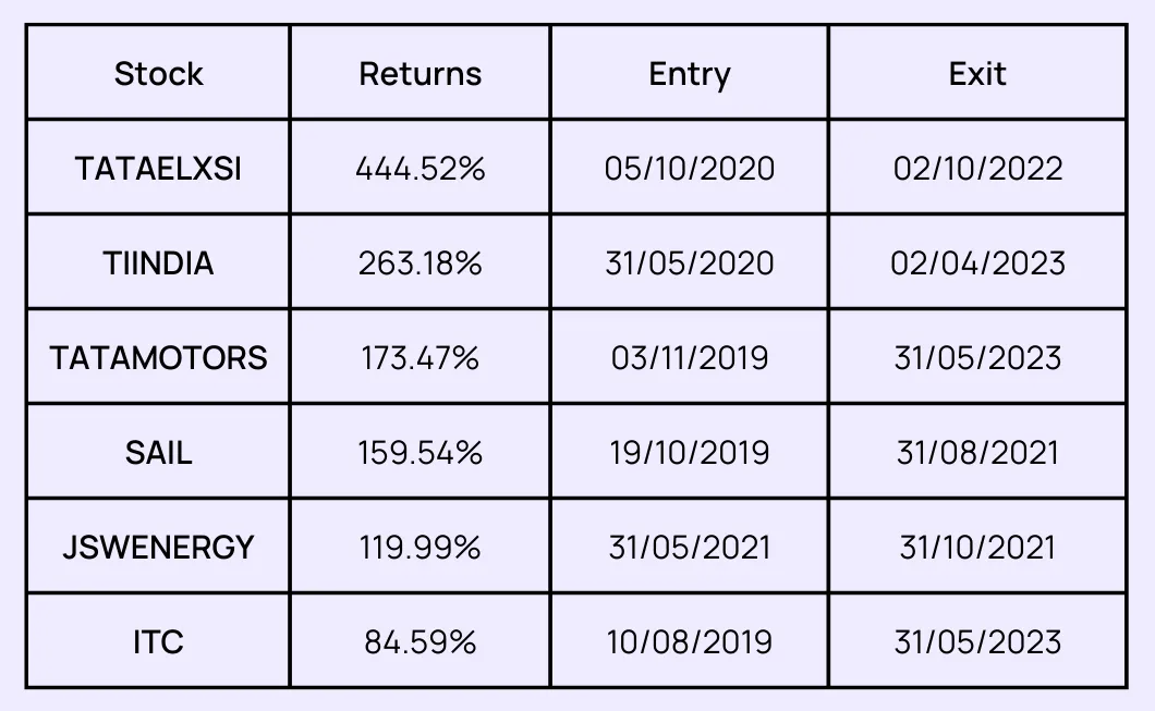 ITC: ITC Limited is a multi-business conglomerate with operations in fast-moving consumer goods (FMCG), hotels, paperboards, and packaging. Despite the challenges posed by the FMCG sector's intense competition and regulatory changes, ITC has maintained a strong footing due to its diverse business portfolio and strong brands. The stock has delivered an 84.59% return in the Wright Conservative Multifactor portfolio, held from 10th August 2019 to 31st May 2023.