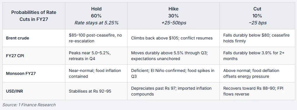 The critical data points to monitor in the coming months include: monthly ENSO updates from NOAA, the IMD's updated monsoon forecast expected in May, kharif sowing progress from June onward, global fertilizer and crude oil price trends , and food inflation readings from June through September. The outcome of the monsoon season, and the duration of the Strait of Hormuz disruption, will together shape India's rural economic trajectory, fiscal position, inflation path, and monetary policy direction for the rest of the year and into FY28.