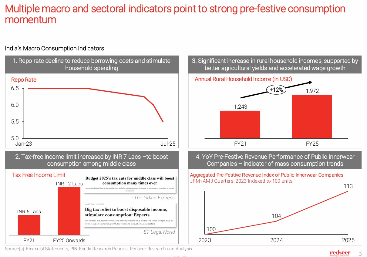 Another interesting point to note is that Shraadh ended earlier, giving retailers a longer, cleaner runway into Navratri and Dussehra. This matters for autos (delivery clusters) and housing (auspicious-date registrations), where timing effects are as important as ticket price.