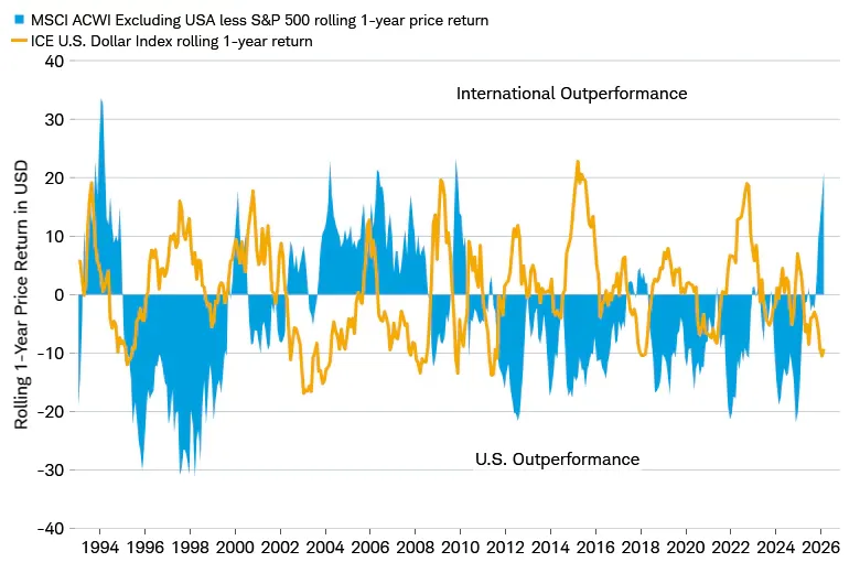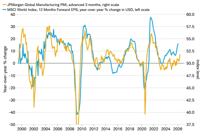 There are 2 reasons equities have held up. First, macroeconomic conditions entering 2026 were strong. GDP tracking estimates were above 3%, supported by the fiscal effects of the Big Beautiful Bill, and the global economy was in the middle of a cyclical acceleration. Markets went from optimistic to less optimistic but have not turned outright bearish. Second, investors are cautious about over-reacting. The Liberation Day tariff shock earlier in the year saw markets aggressively reprice growth, only for a policy reversal to trigger a sharp rebound. That experience has made portfolio managers reluctant to sell aggressively into geopolitical volatility.