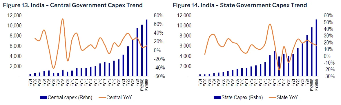 Fiscal headroom and phasing: If revenue streams underperform or priorities shift, central/state capex could be re-profiled within the year. The FY26 BE shows consolidation—not renewed acceleration—so the mix matters more than the absolute print.