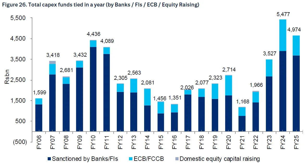 Healthier corporates: Listed-company capex rose in FY25 and leverage is lower than a decade ago; when utilization tightens, the private upcycle can broaden from a position of strength.