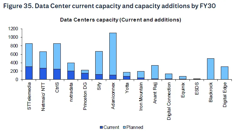 India’s data center (DC) capacity was ~1,350 MW as of April 2025, with >3,500 MW expected to be added by FY30—pushing total capacity beyond 5 GW. Mumbai (53%), Chennai (15%), and Delhi-NCR (11%) are the main clusters today. Announced projects imply $20–25 billion of DC capex by FY30, and crucially, roughly ~70% of DC capex sits in equipment and fit-outs for power, cooling, and white space—an addressable TAM of ~$15–17 billion for capital goods by 2030.