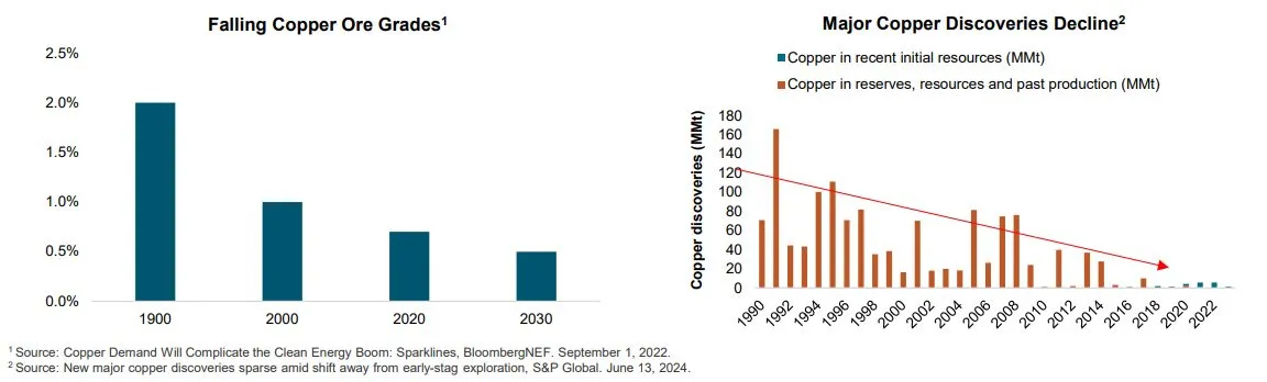 Then there’s the reality of project lead times and geology. New mines are slow because permitting, community acceptance, water constraints, and power access can take years. At the same time, ore grades are declining in many mature districts, meaning you must move more rock to produce the same copper,raising costs, energy use, and operational complexity. The IEA points to declining ore grades and long lead times as core drivers behind the projected supply gap.