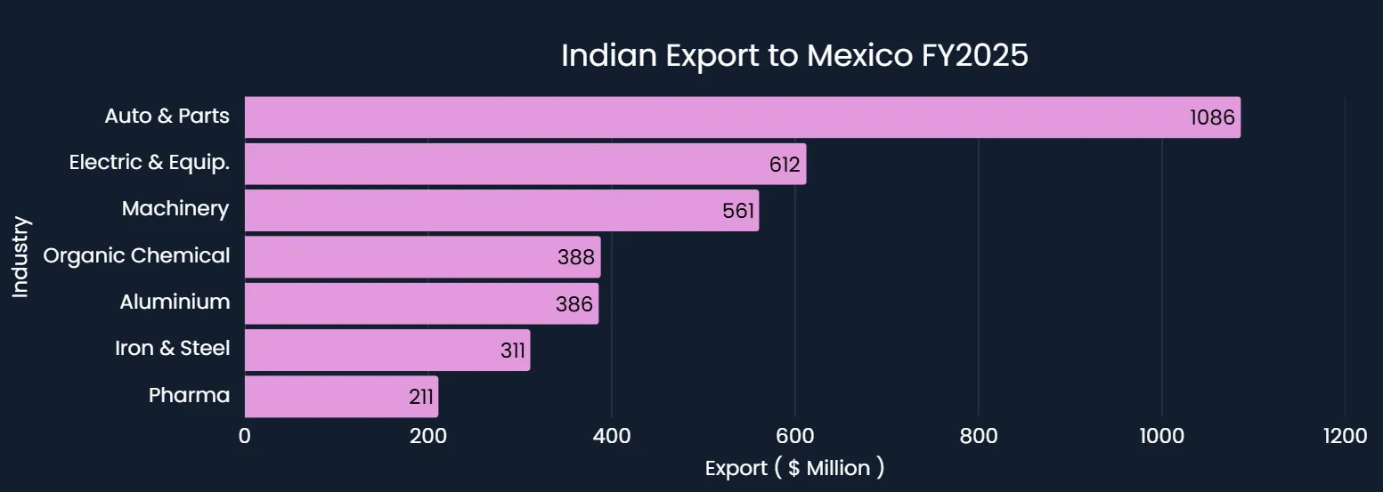 Indian Exports to Mexico by Sector (FY 2024-25), Source : Trading Economics