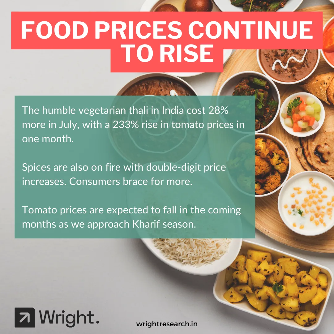 The cost of a vegetarian thali in India rose by 28% in July, with a significant contribution from the price of tomatoes alone. The ripple effect is also being felt in other vegetables and spices. Consumers are unlikely to find relief from these high rates, especially as tomatoes are predicted to touch ₹300 per kilogram in the coming days. The situation with onions is equally dire, with prices expected to escalate further.